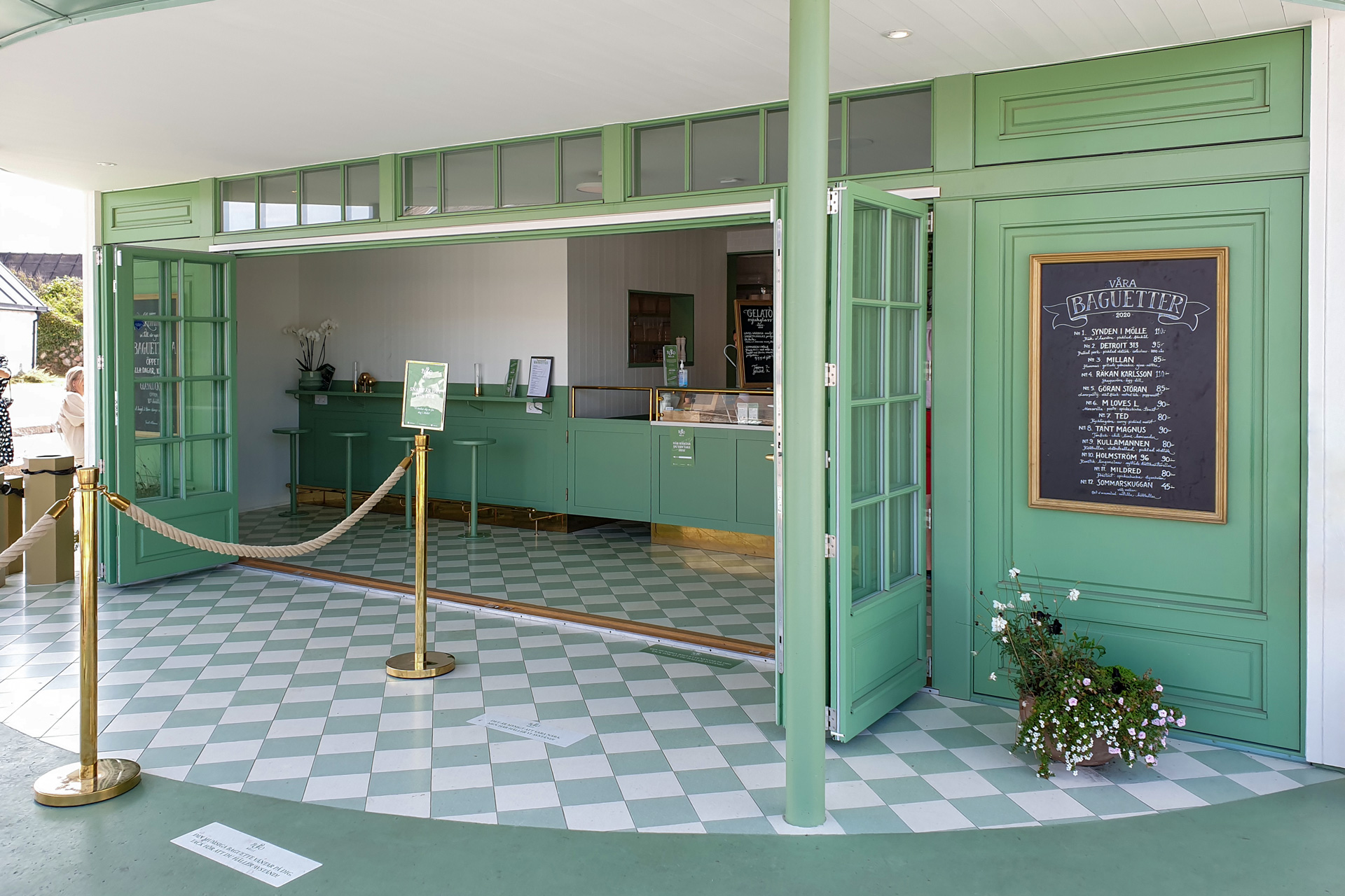 The sea theme is central in the choice of the palette of the project, Avorio and Acquamarina framed by a pastel checkerboard pattern in combination with the pure white walls. The rounded design module of the building helps to give a feeling of freshness and play to an environment dedicated to pleasant moments of dining.