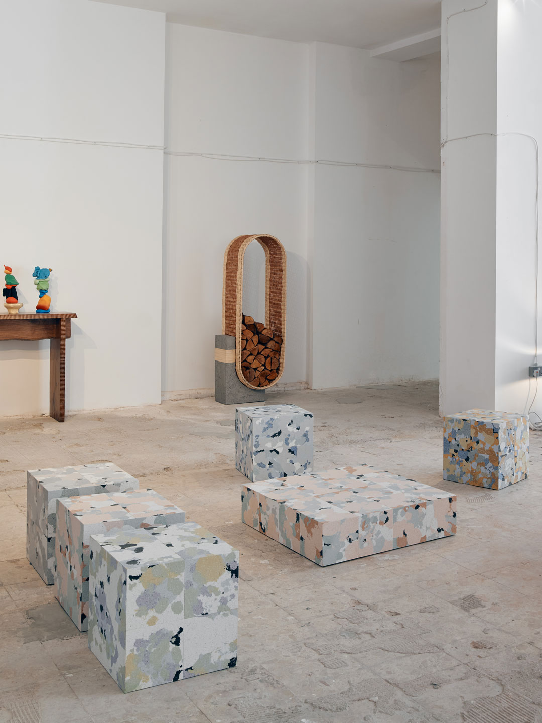 Thanks to this collaboration with MIPA, Lee was able to design a customized decor with a captivating mix of colors, creating entirely new patterns that added a touch of originality and sophistication to his works. The combination of the essential form of the tables and the striking design of MIPA’s terrazzo represents a perfect balance between aesthetics and functionality, embodying the very essence of “The Farm Shop.”