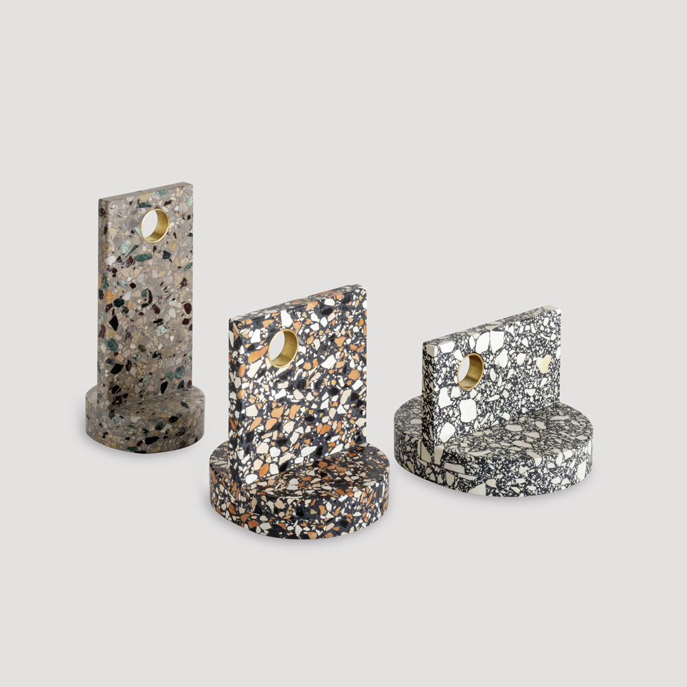 These doorstops are the only objects in the collection that are not entirely mono-material. They are in fact equipped with a brass detail inside the handle, useful for embellishing the contact point between person and product. Function and aesthetics together.