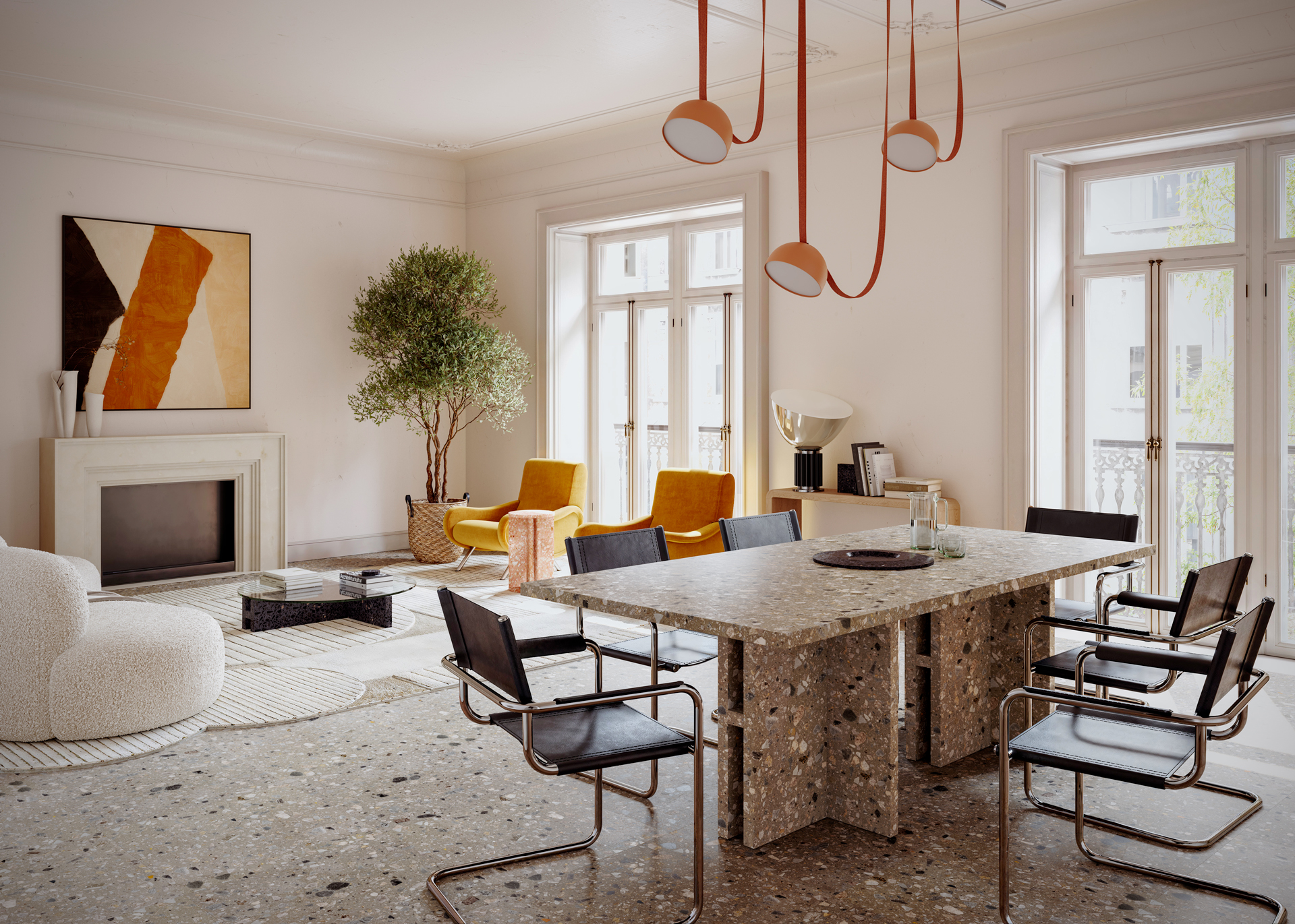 Providing new perspective points of view that highlight other qualities of the terrazzo including resistance, strength and durability starting from the thickness clearly visible in section. The collection was presented on the occasion of the 60th Salone del Mobile 2022.